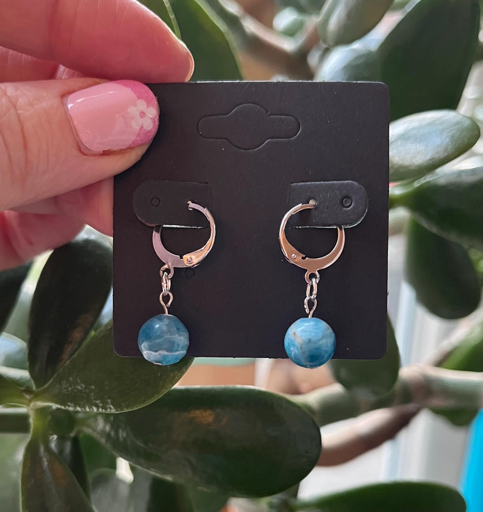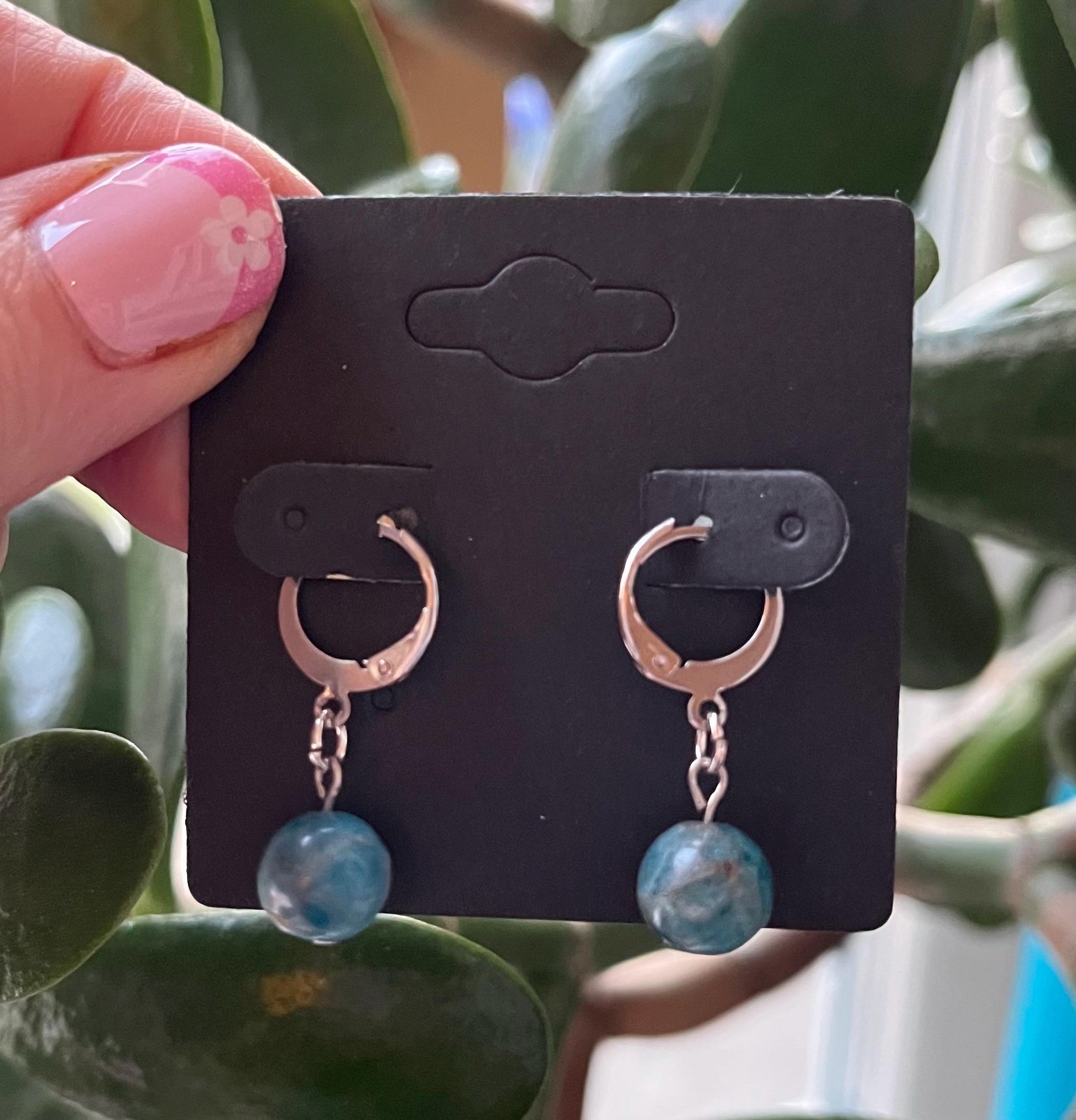 These elegant earrings feature genuine blue apatite beads, known for their vibrant oceanic hues and natural sparkle. Paired with hypoallergenic stainless steel huggie hoops, they’re perfect for everyday wear or adding a subtle pop of colour to any outfit.