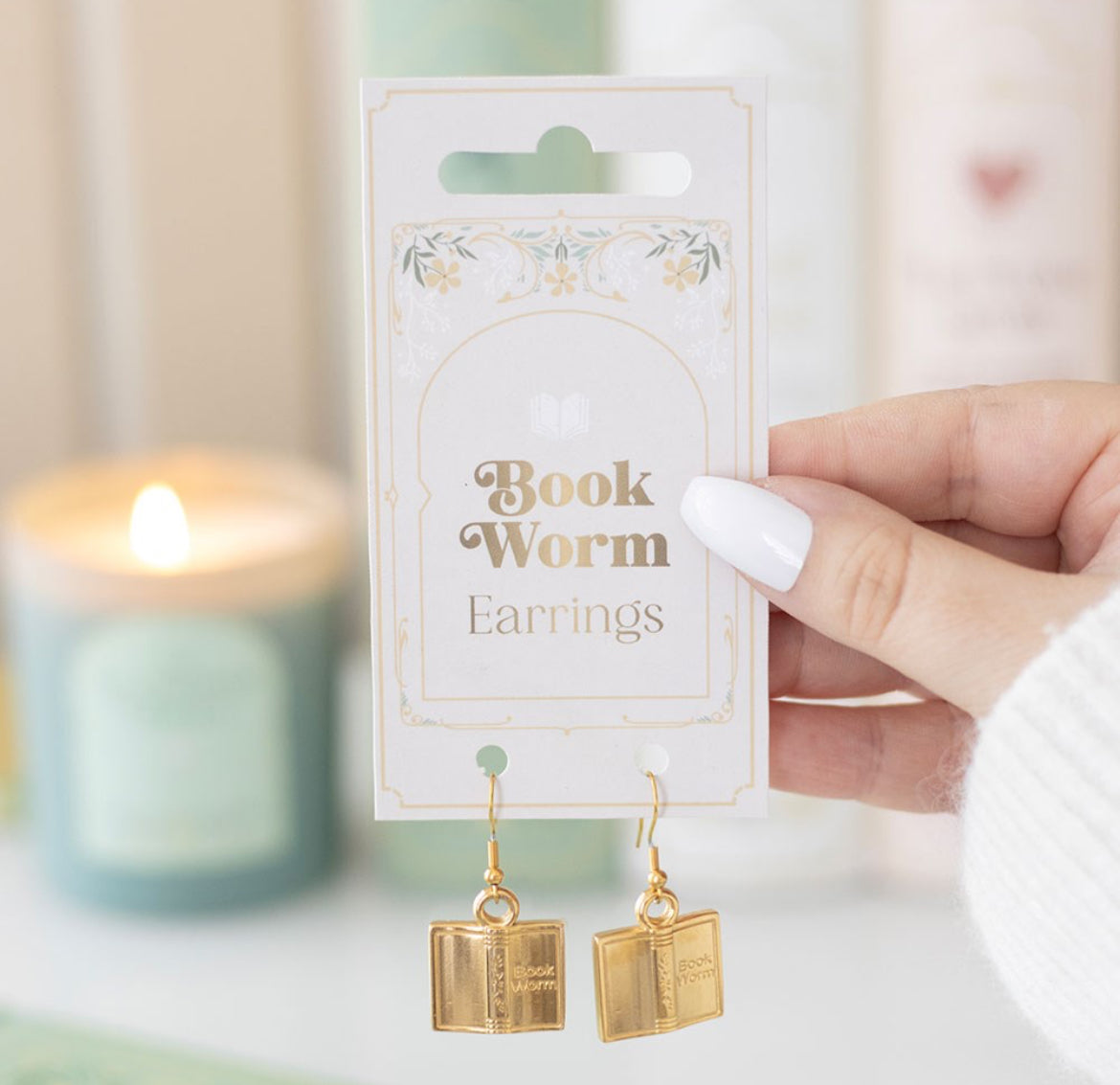 These book-shaped dangle earrings are a subtle nod to your love of literature, featuring a 'Book Worm' design that makes the perfect finishing touch for any reader s outfit.