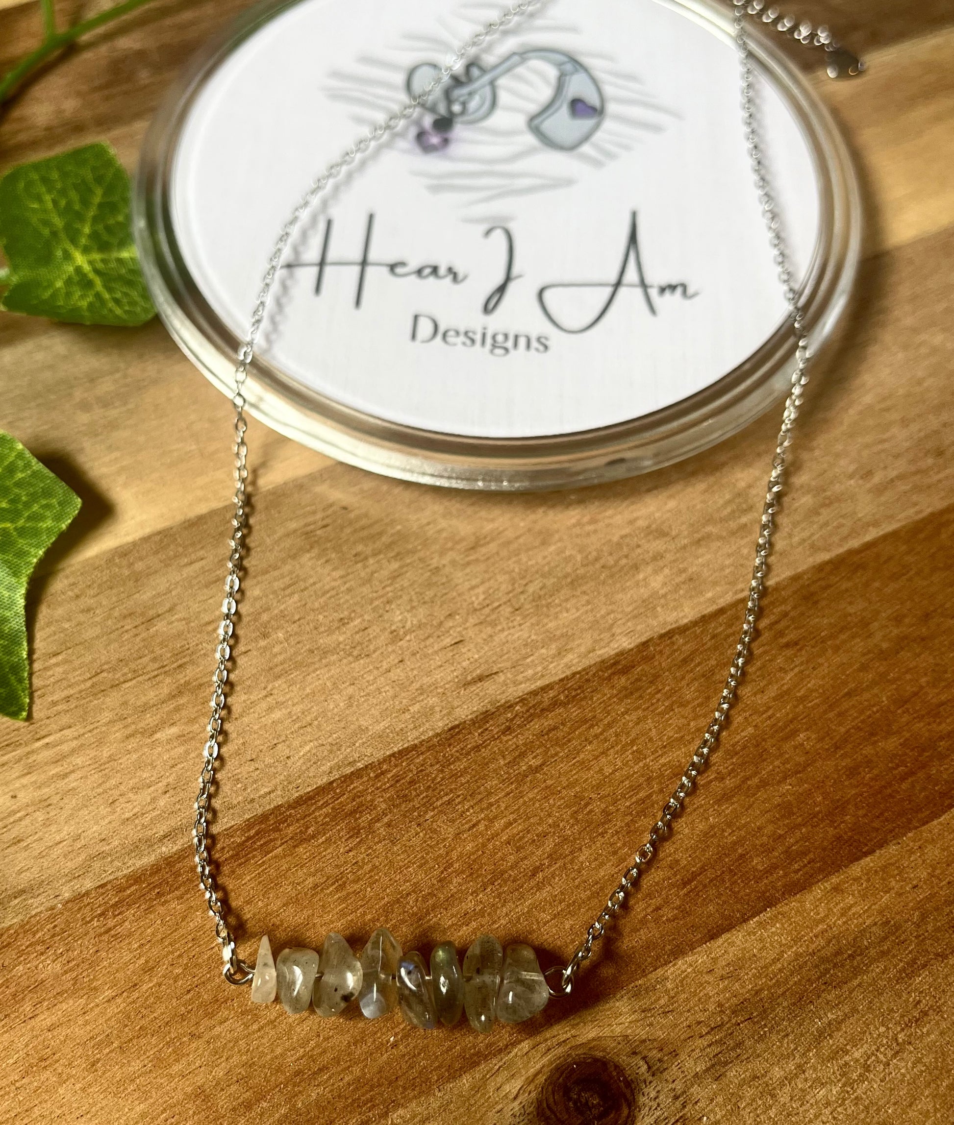 Crystal Chip Minimalist Necklace – 16” Stainless Steel Chain