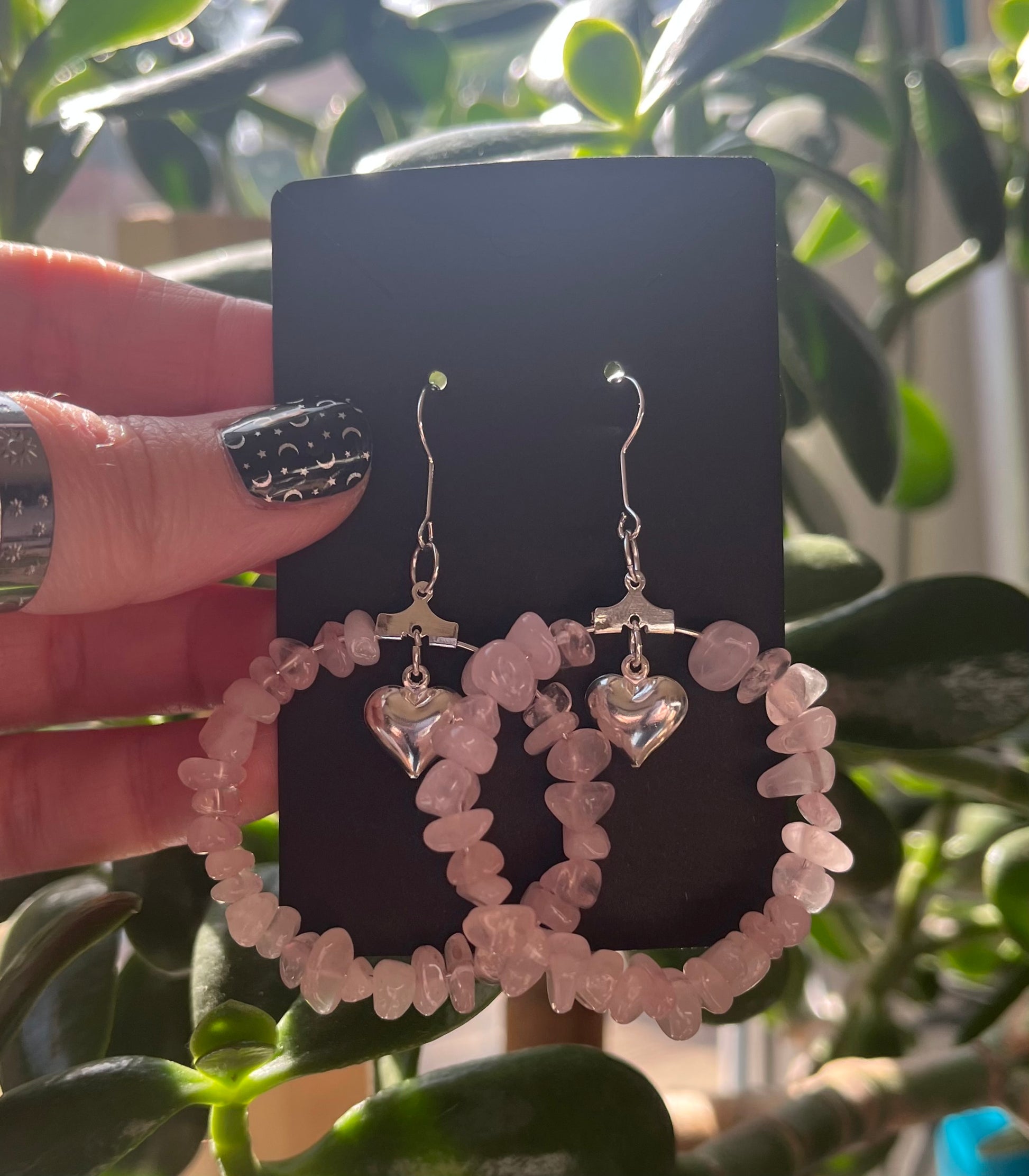 Crystal Charm Statement Hoop Earrings - Available in Amethyst, Rose Quartz and Kiwi Jasper