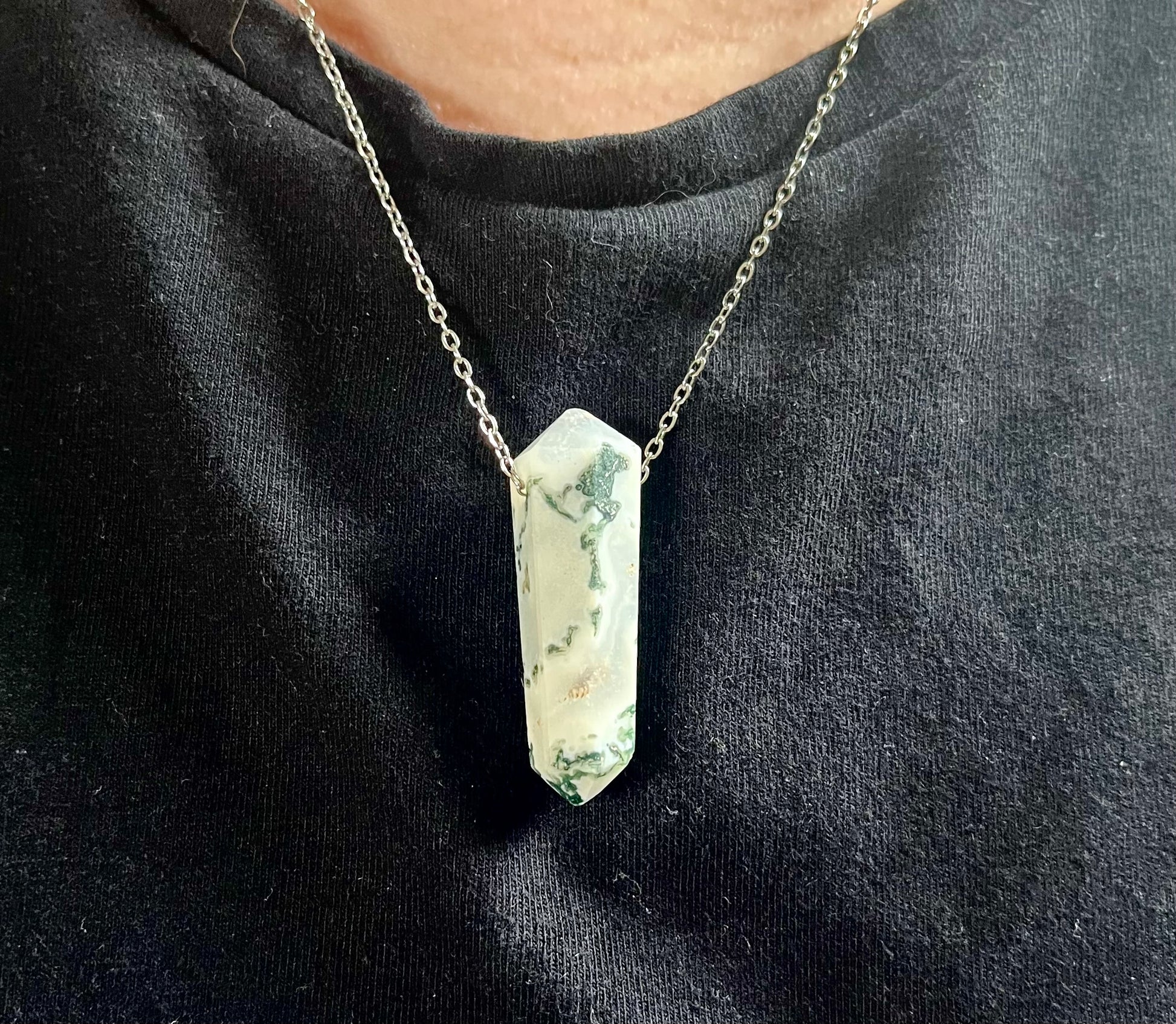 Add a touch of natural elegance to your look with our Crystal DT (Double-Terminated) Point Necklaces, featuring sleek crystal points on a durable stainless steel chain. With an 18-inch length and a 2-inch extender, this necklace is perfect for wearing on its own or layering with your favorite pieces.