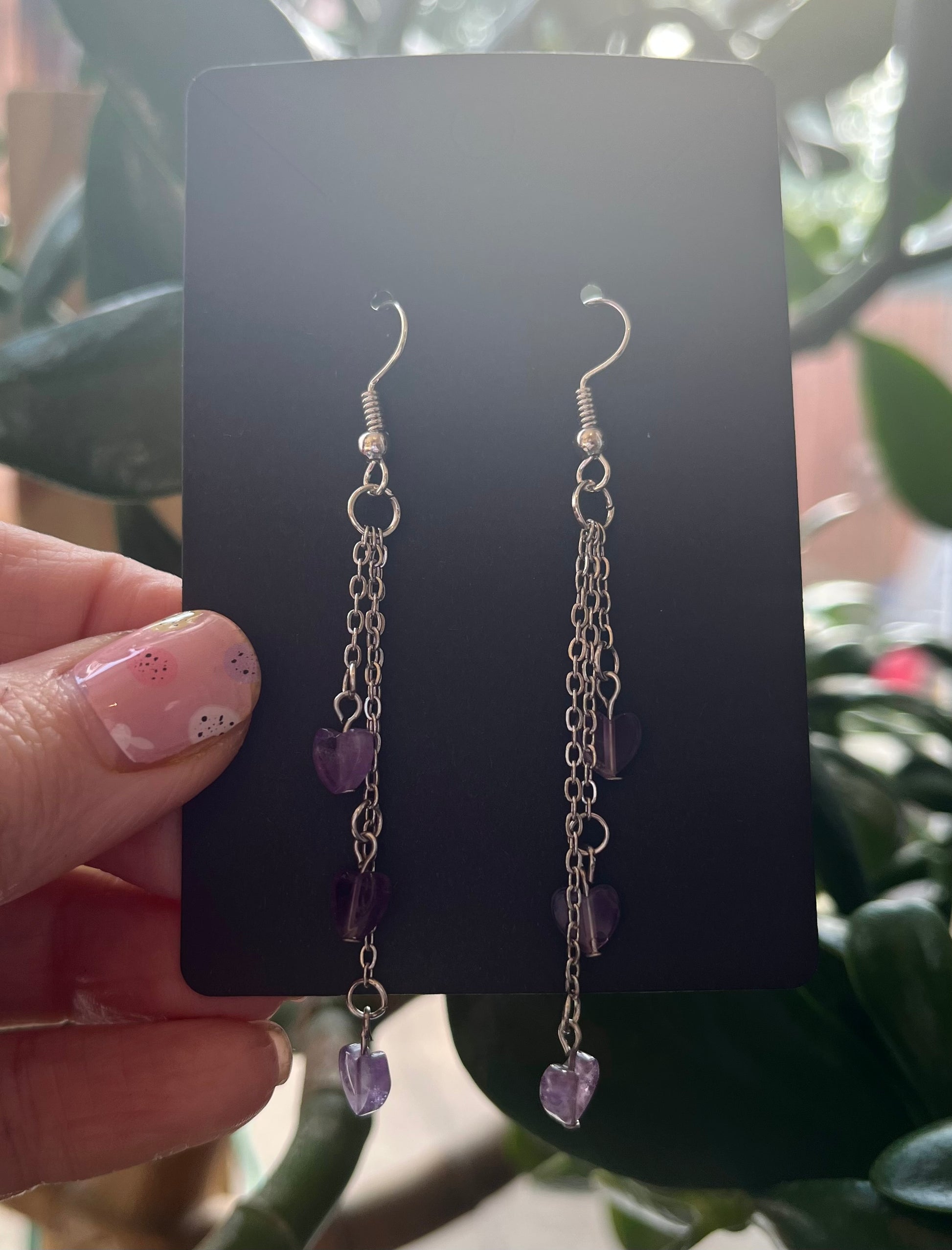 Crystal Heart Dangle Earrings - Available in Amethyst, Sodalite, Black Obsidian and Dalmatian Jasper