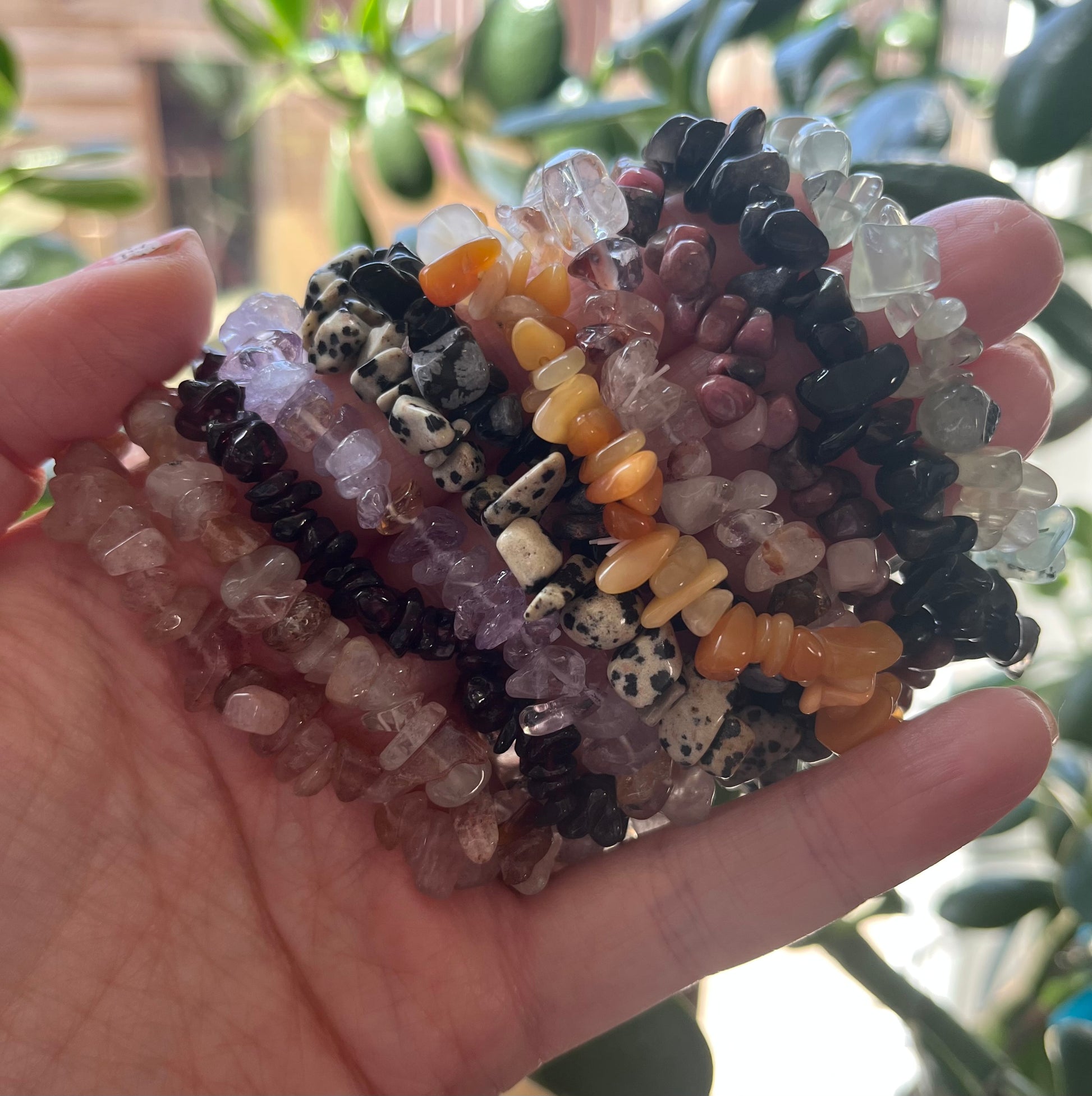 Simple, natural, and easy to wear — our Elasticated Crystal Chip Bracelets are made with genuine crystal chips and a strong elastic cord for a comfortable, flexible fit.