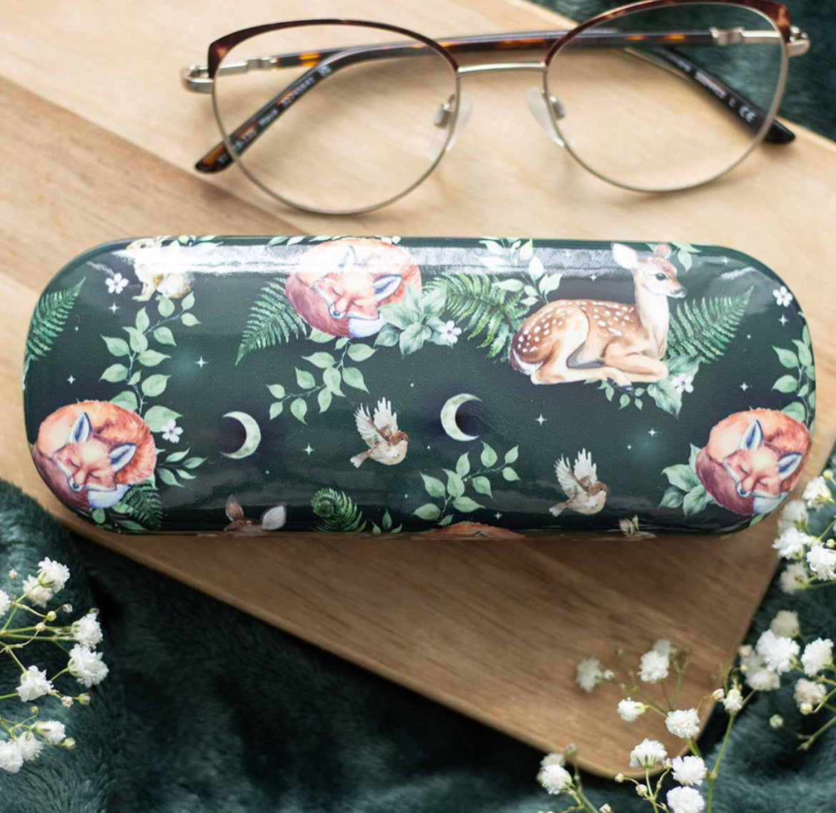 Keep your glasses safe and stylish with this lightweight, hardshell glasses case featuring a beautiful forest animal print.