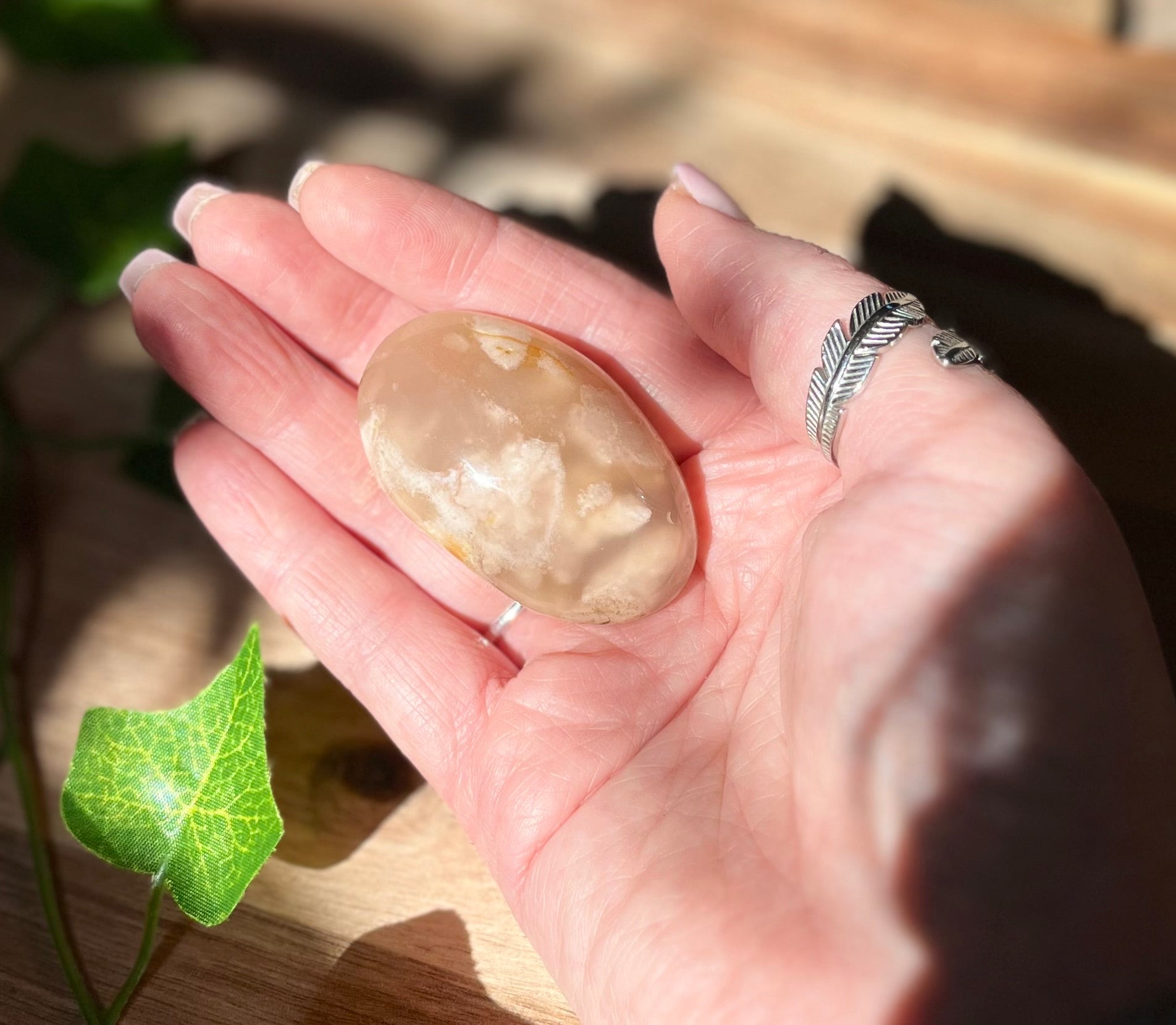 Our Crystal Palm Stones are hand-polished to a smooth finish and shaped for comfort, making them ideal for holding, carrying, or displaying. Each one is crafted from natural stone and features the unique colors and patterns that only nature can create.
