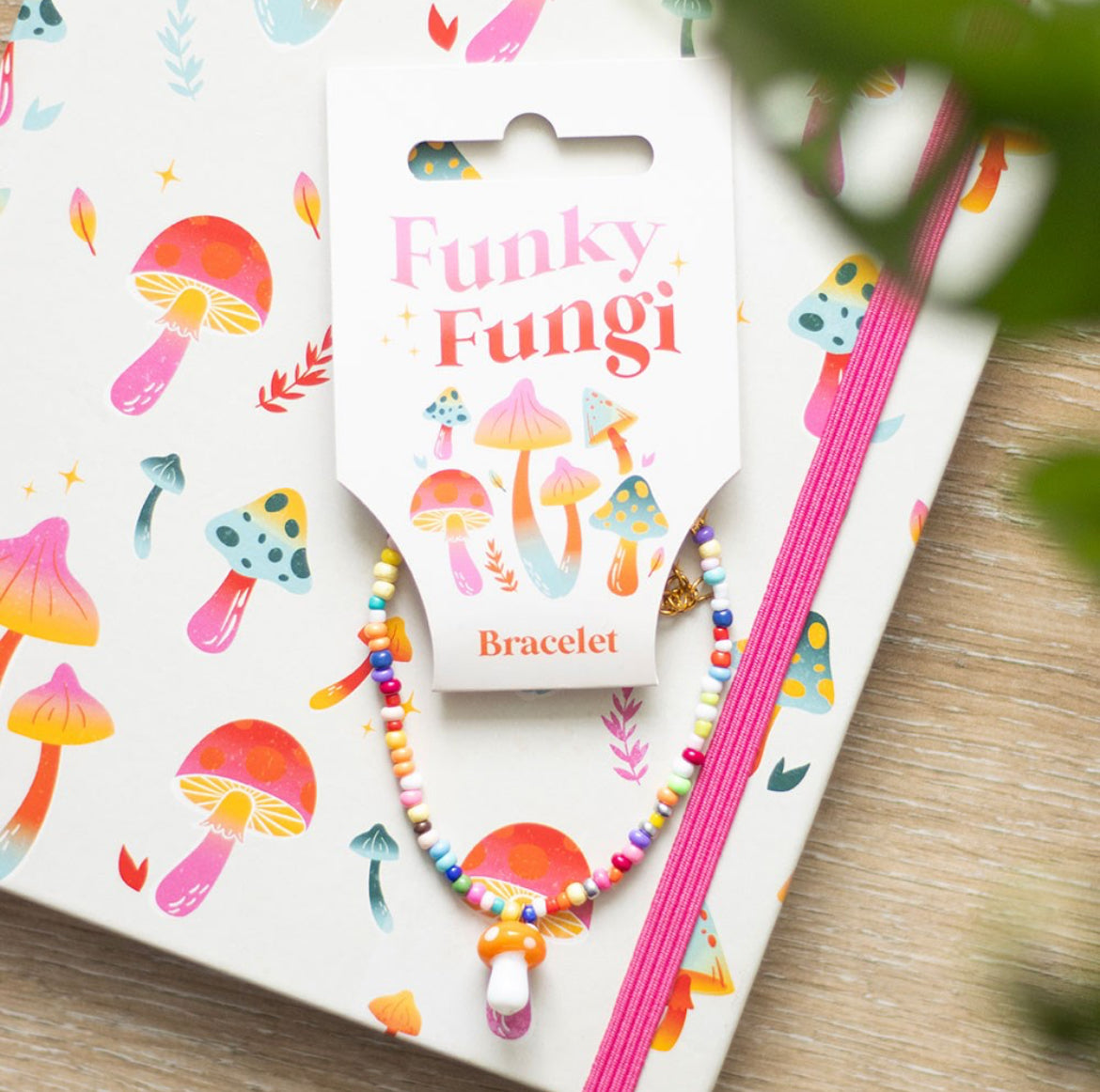 Add a touch of colour and joy to your jewellery collection with this glass toadstool mushroom beaded charm bracelet.