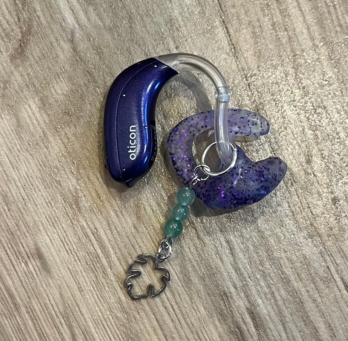 Celebrate nature’s calming beauty with these elegant hearing aid charms, featuring silver-tone leaf charms paired with soft green aventurine beads. Lightweight and earthy, they’re a lovely way to add a personal, nature-inspired touch to your hearing aids.
