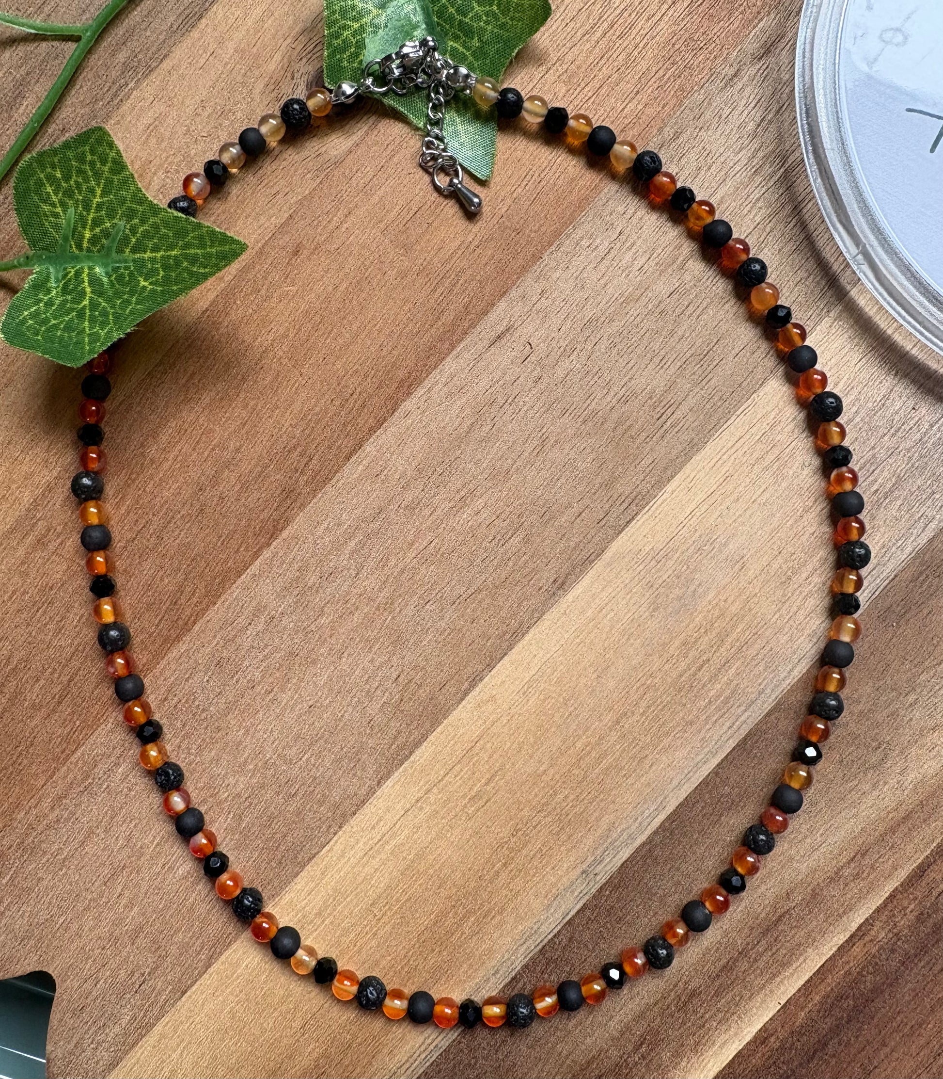 Handmade Beaded Necklace with Carnelian, Lava Stone and Glass Beads