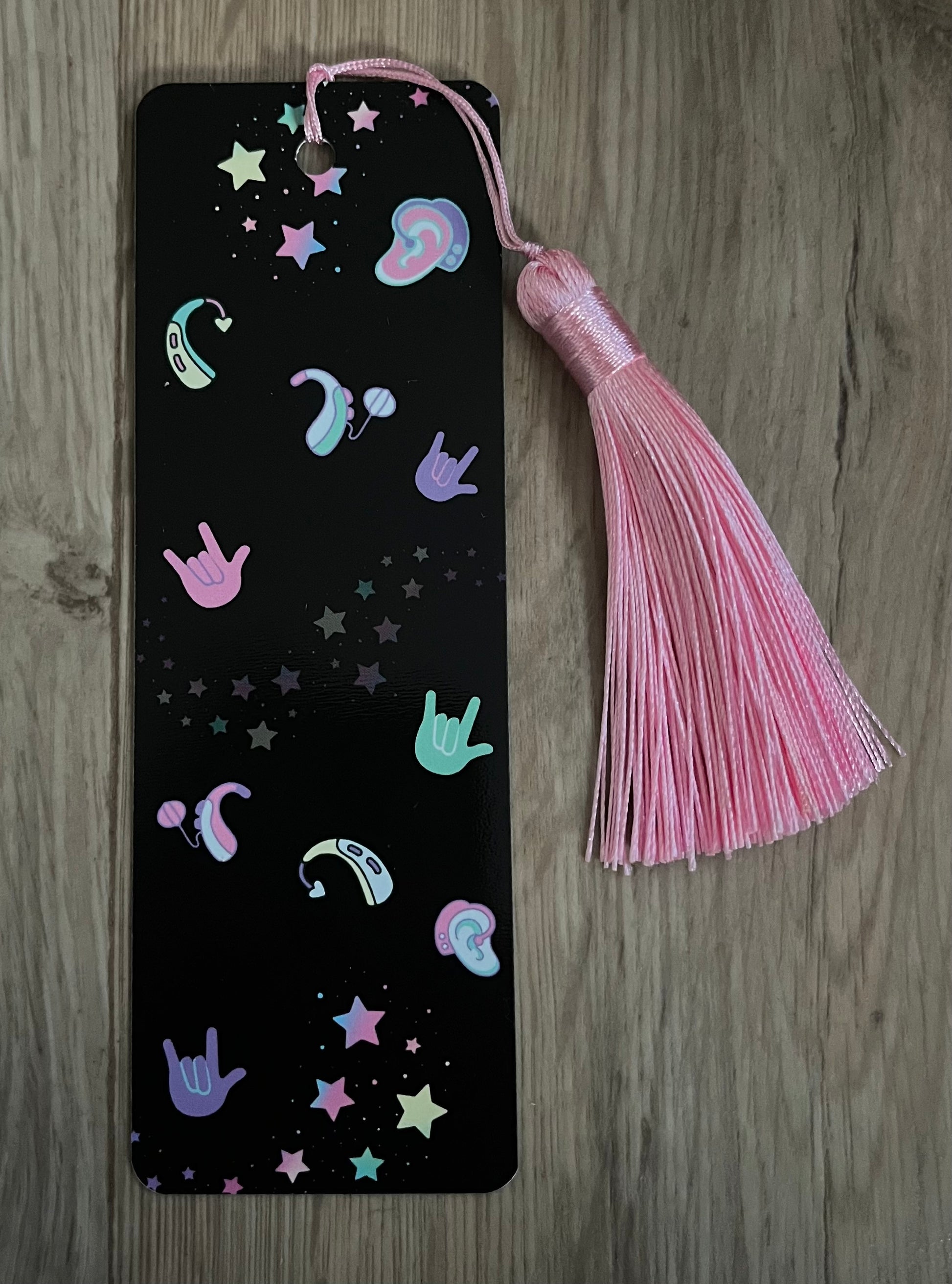 Each bookmark features vibrant illustrations of hearing aids and cochlear implant processors, as well as a vibrant, colourful tassel to add a fun pop of personality to your reading experience. Tassel colours are selected at random, creating a delightful surprise when your order arrives.