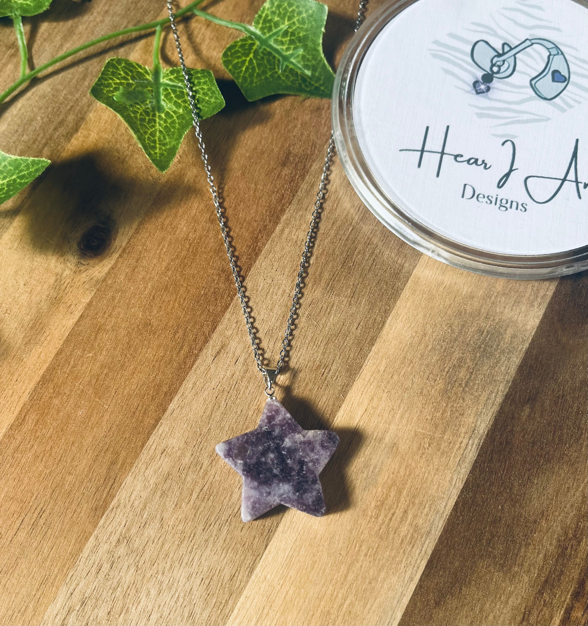 Bring a touch of the stars to your style with this elegant Lepidolite star pendant — a perfect blend of natural beauty and wearable art.