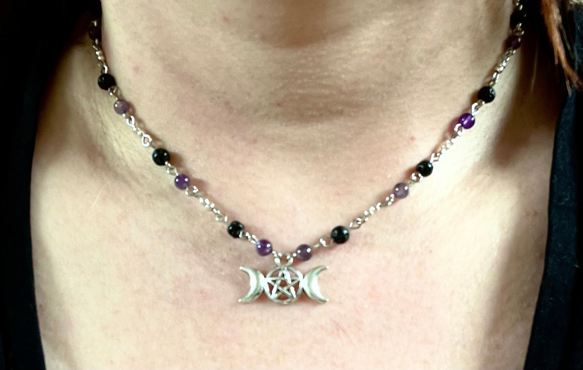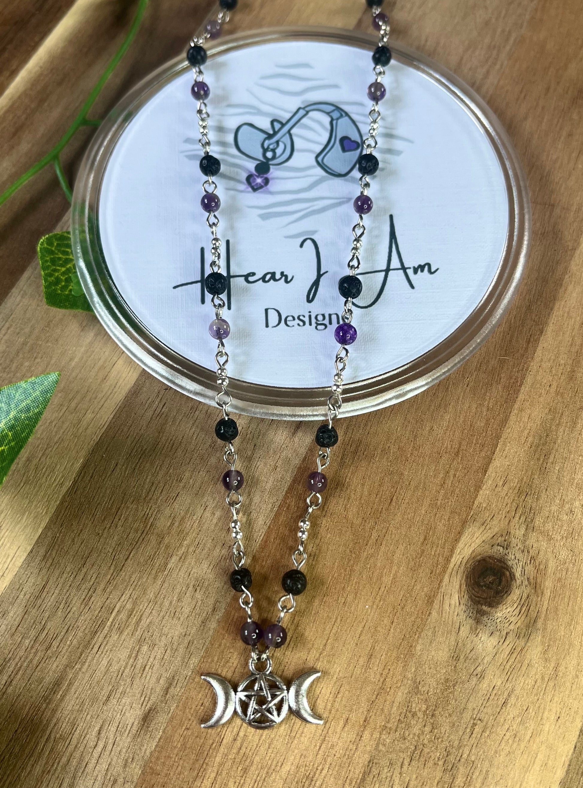 Moon Phase Necklace – Amethyst, Lava Stone & Stainless Steel