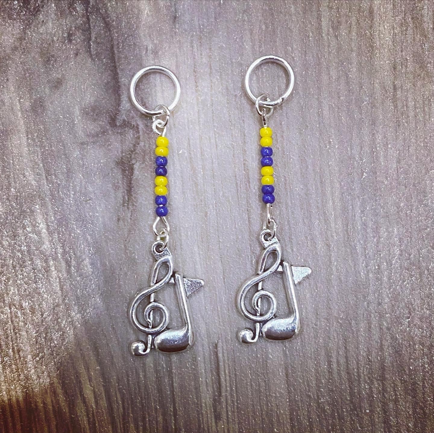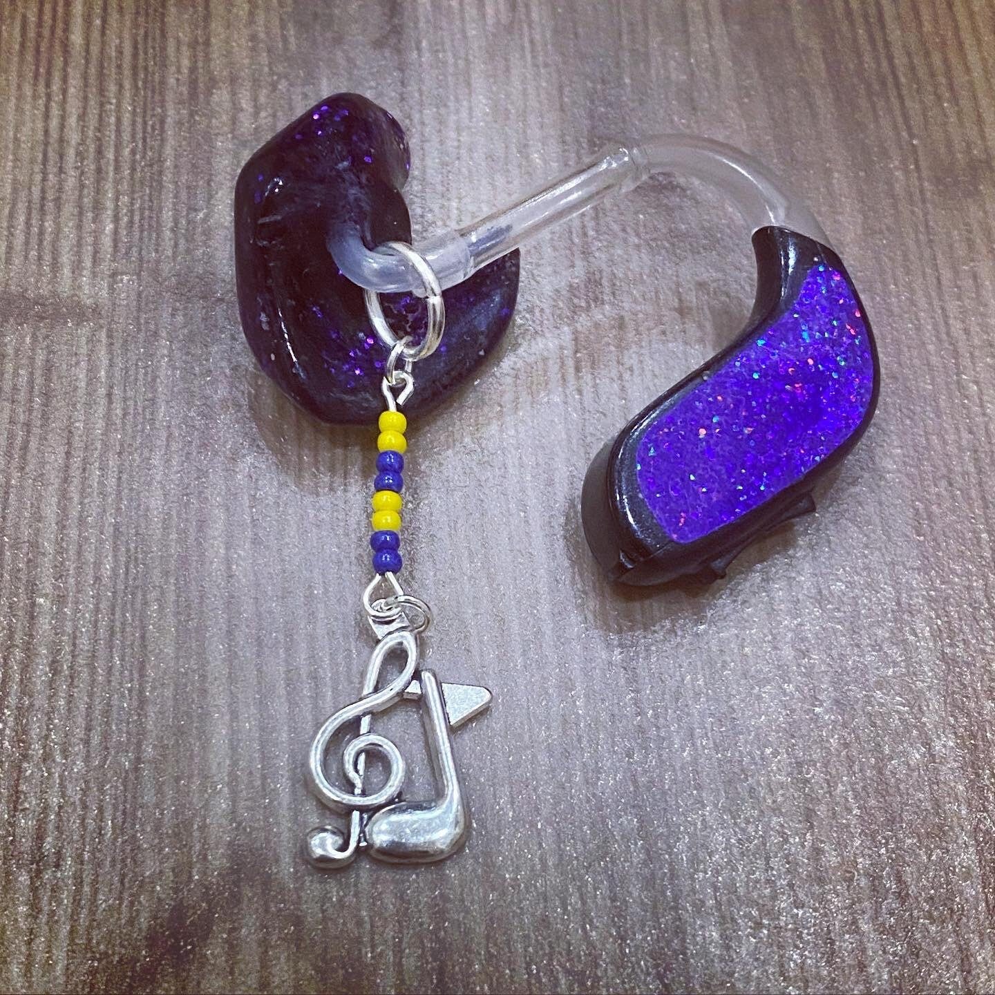 These hearing aid charms feature metal music notes and treble clefs, accented with plastic beads and silver-plated hoops. Perfect for music lovers who want to add a little personality to their hearing aids.