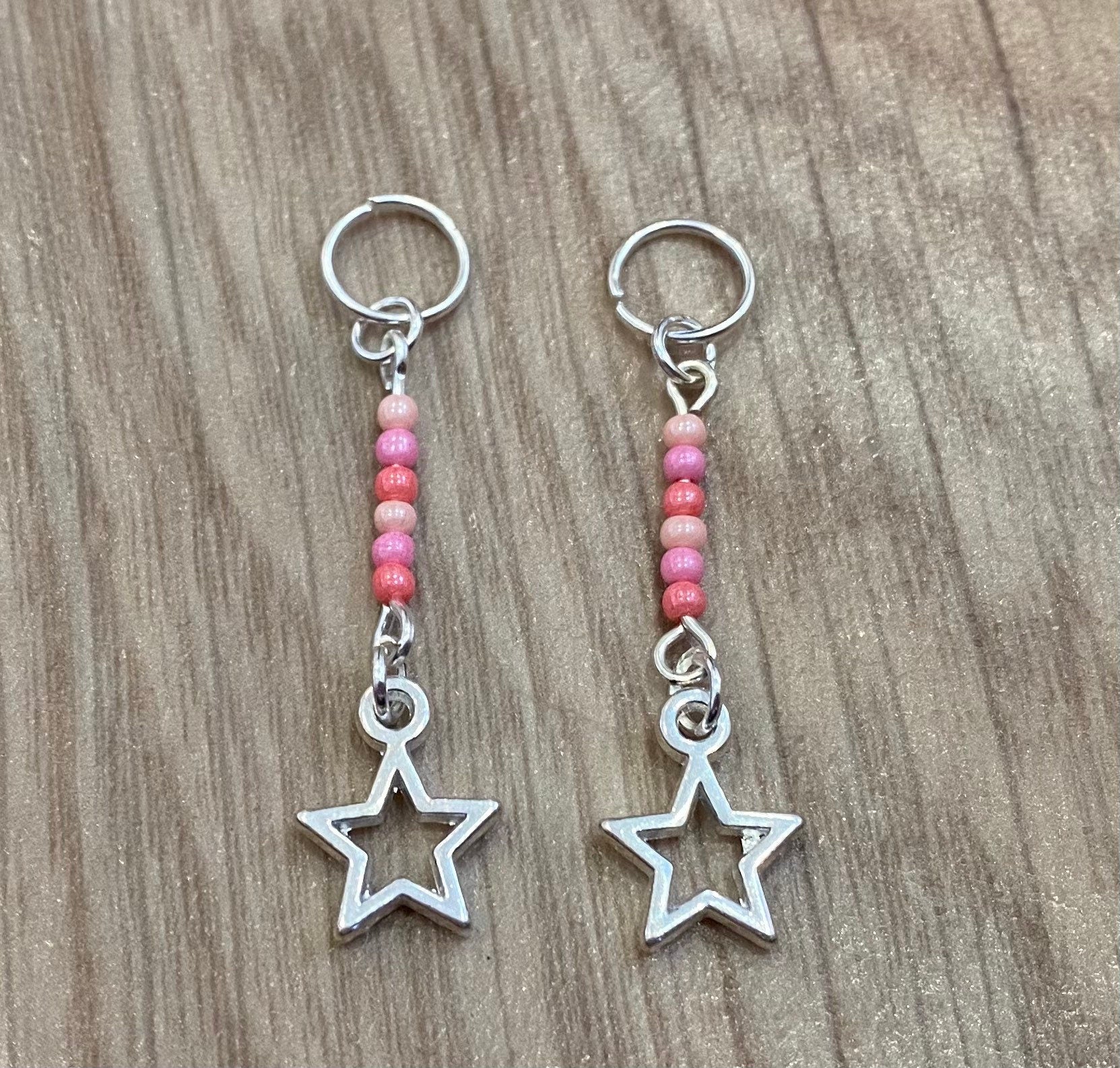 - Made with metal stars, plastic beads, and silver-plated hoops