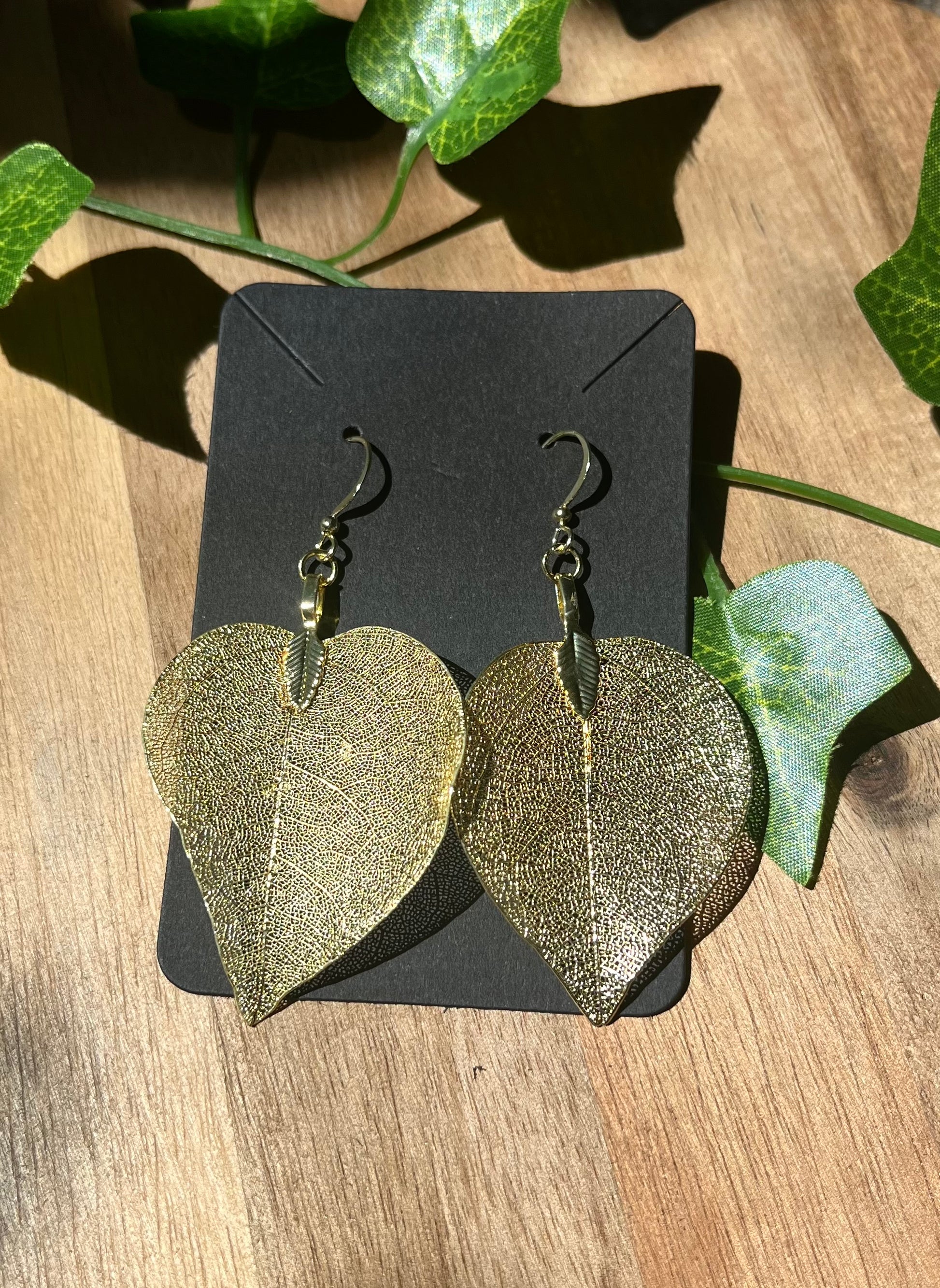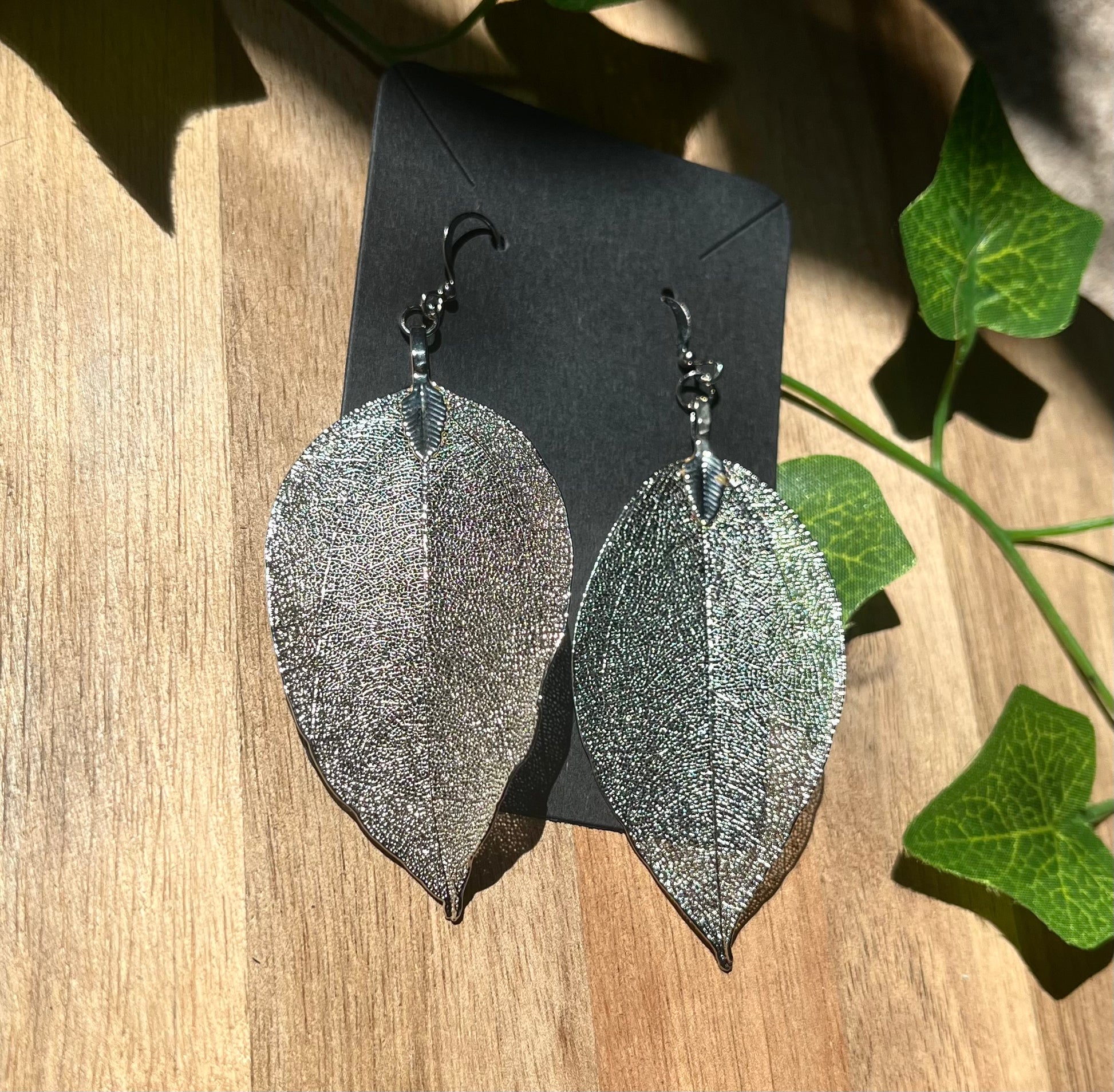 These delicate earrings are made from real leaves, each one carefully preserved and coated in metal to highlight its natural shape and vein pattern. Lightweight and eye-catching, they offer a unique way to wear a little piece of nature.