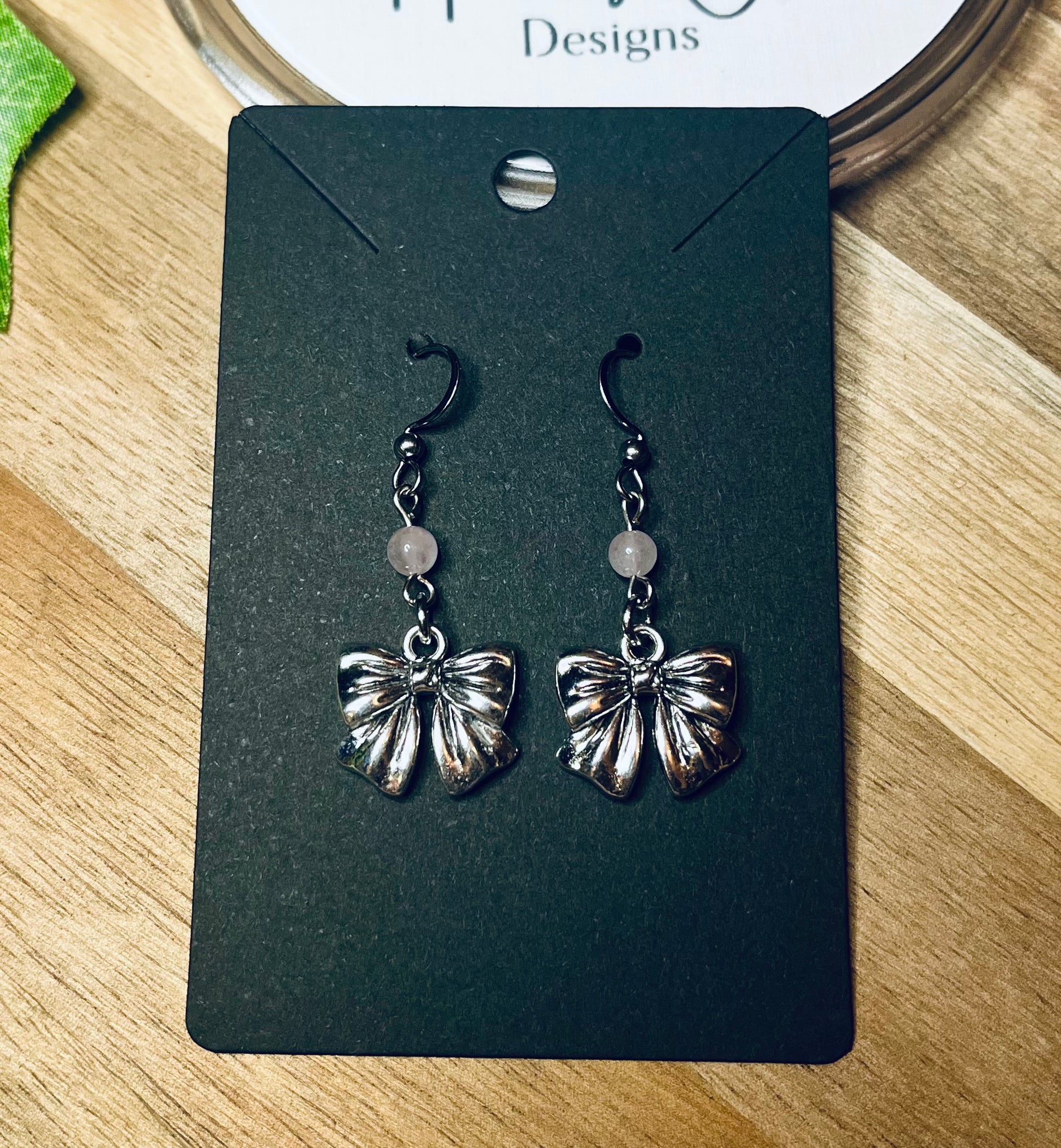 Sweet and stylish, these handcrafted stainless steel earrings feature delicate silver-tone bow charms paired with soft pink rose quartz beads. Lightweight and feminine, they’re perfect for adding a subtle touch of charm to any outfit.