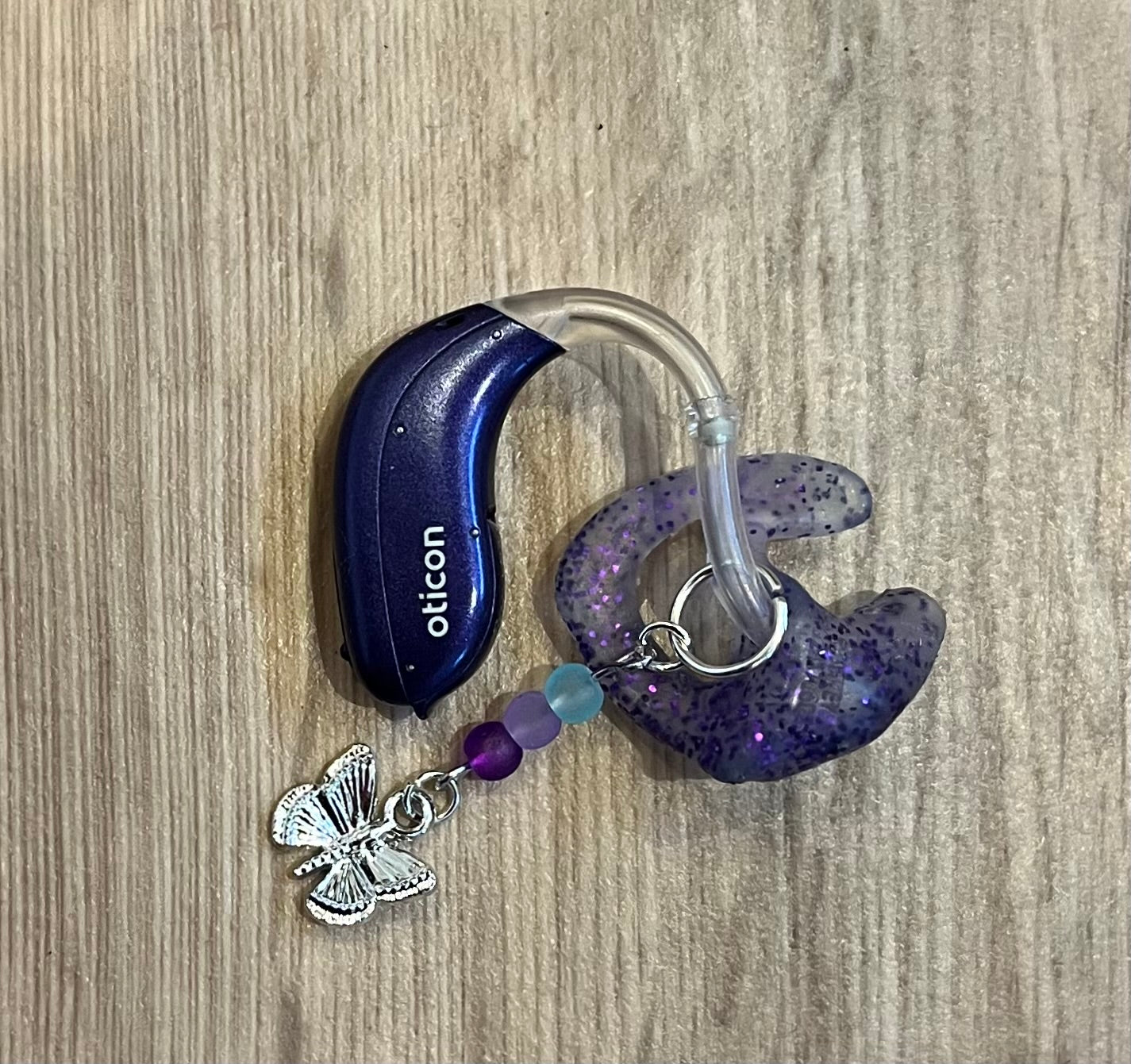 These simple and stylish hearing aid charms feature silver-tone butterflies paired with glass beads. A subtle way to personalize your hearing aids without adding bulk.