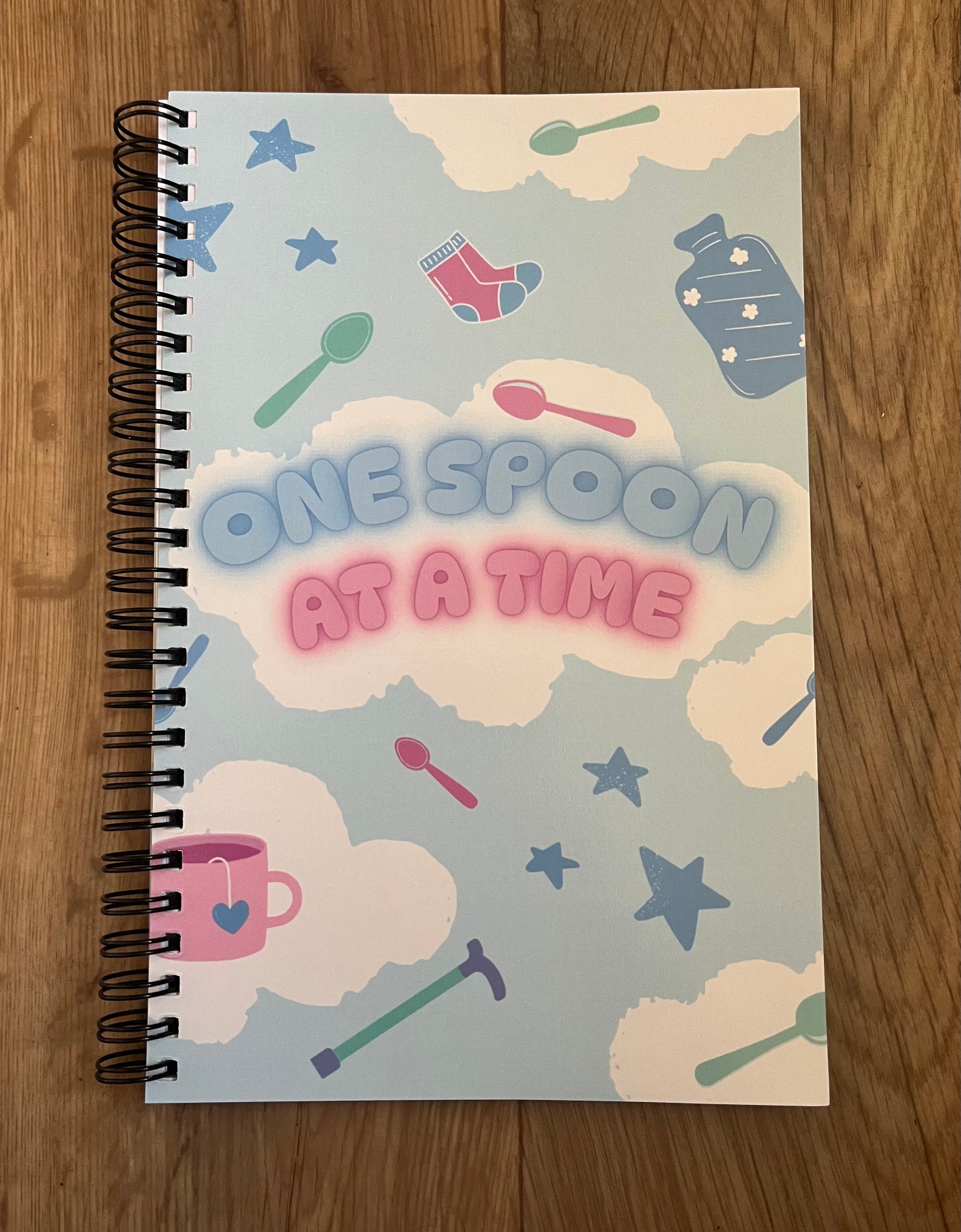 The cover features chronic illness–inspired artwork, centred with the phrase “One Spoon at a Time”, it is a planner that understands the balance of energy, rest, and intention.