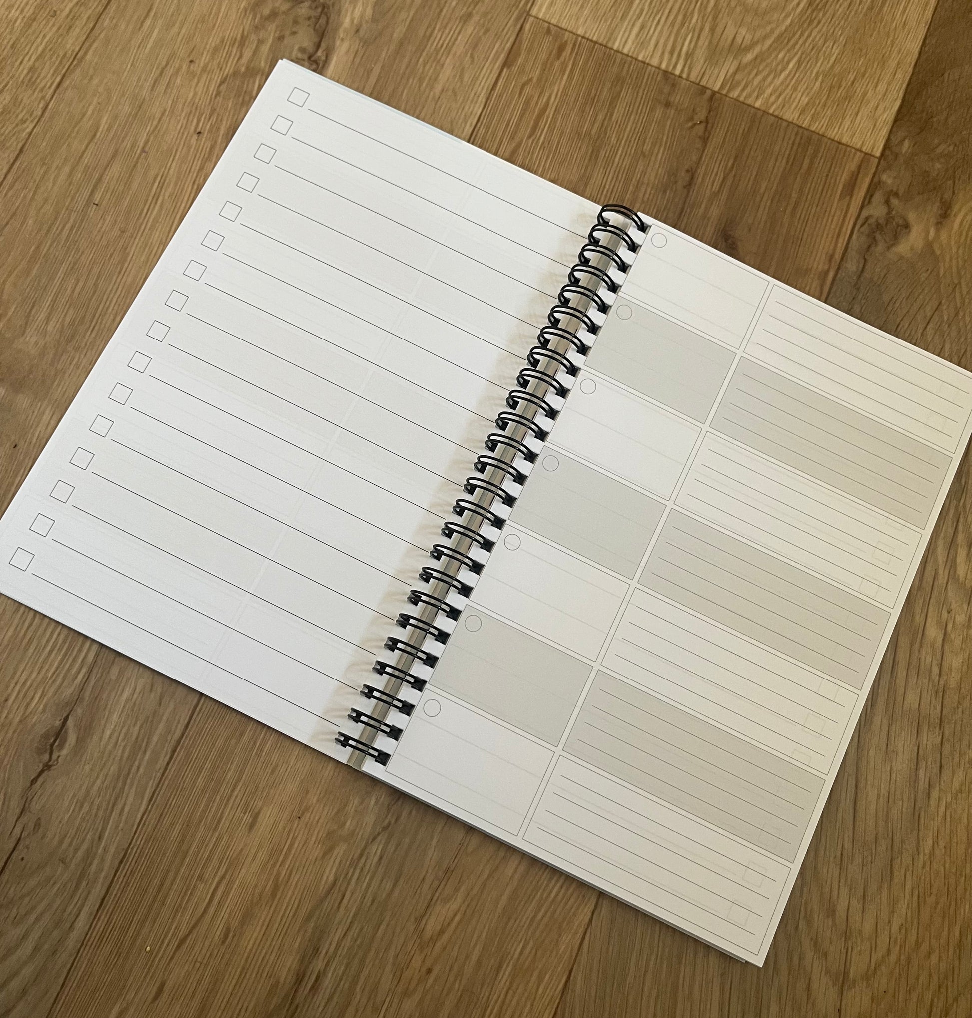 - Undated pages so you can plan at your own pace—skip a week without wasting pages.