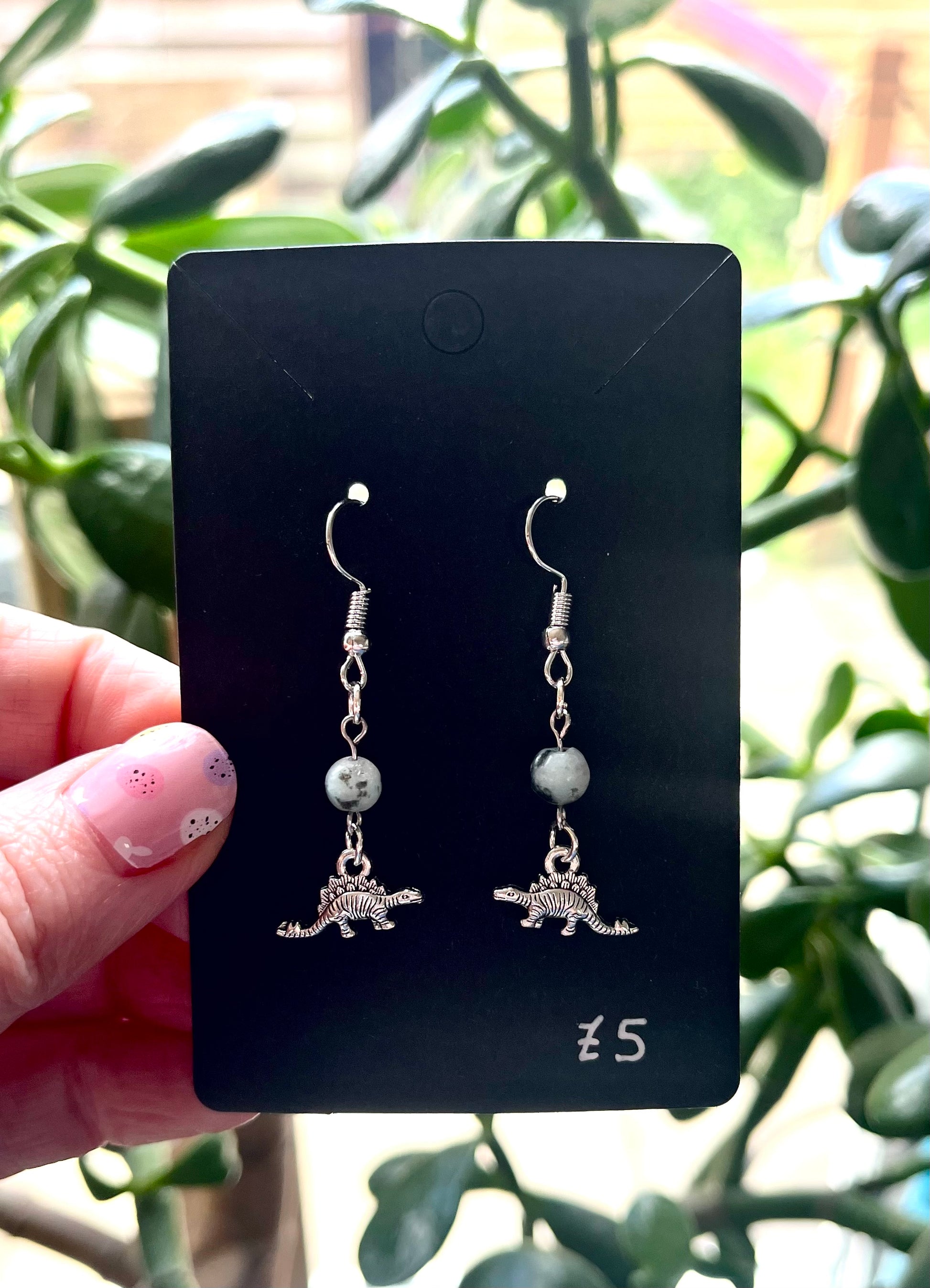 Stegosaurus Earrings with Kiwi Jasper Beads