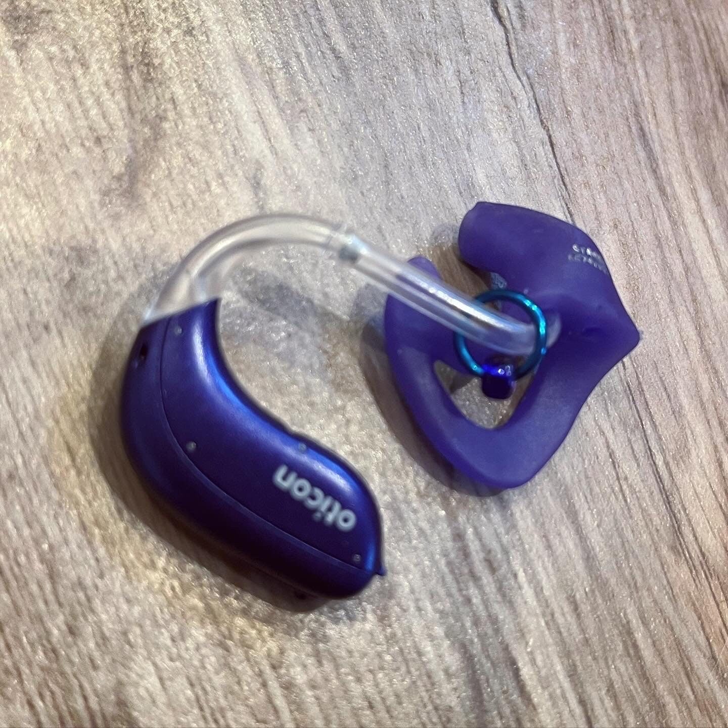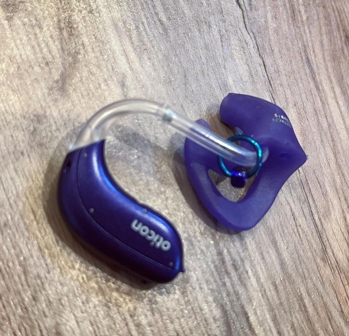 • Purple rings with teal beads - Suitable for standard hearing aid tubing or detachable micro tubing