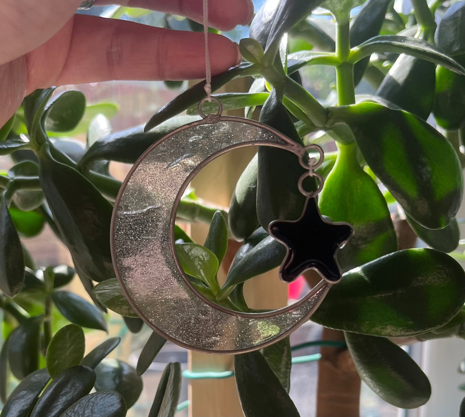 This suncatcher features a stunning Moon & Star design which sparkles in the sunlight.