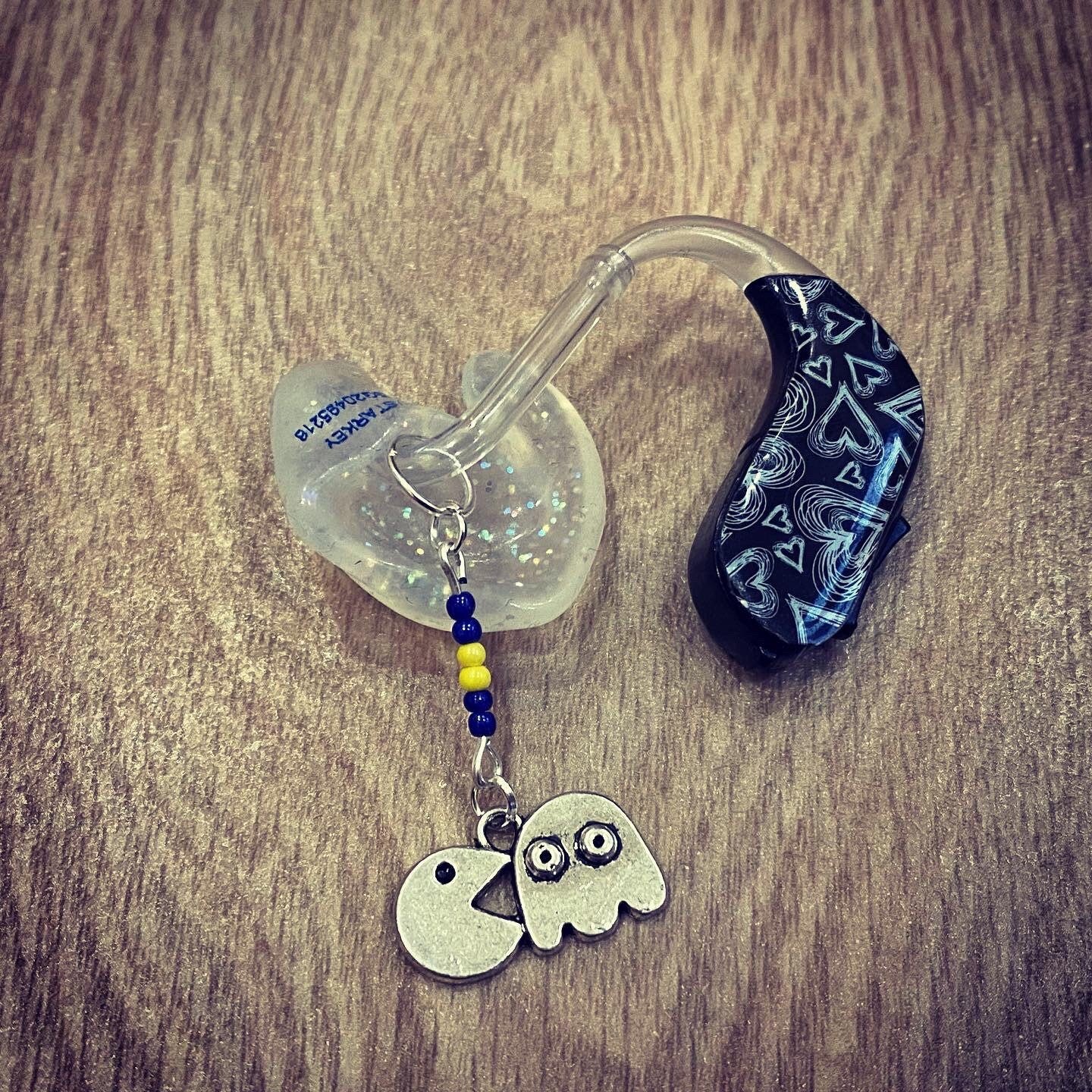 Bring a bit of nostalgia to your hearing aids with these Pac-Man-themed charms. Featuring a metal Pac-Man charm, lightweight plastic beads, and silver-plated hoops, they’re a playful way to add personality to your device.